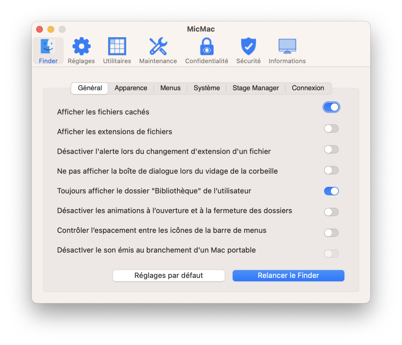 - Hide or reveal elements of your disk (documents, folders or applications).