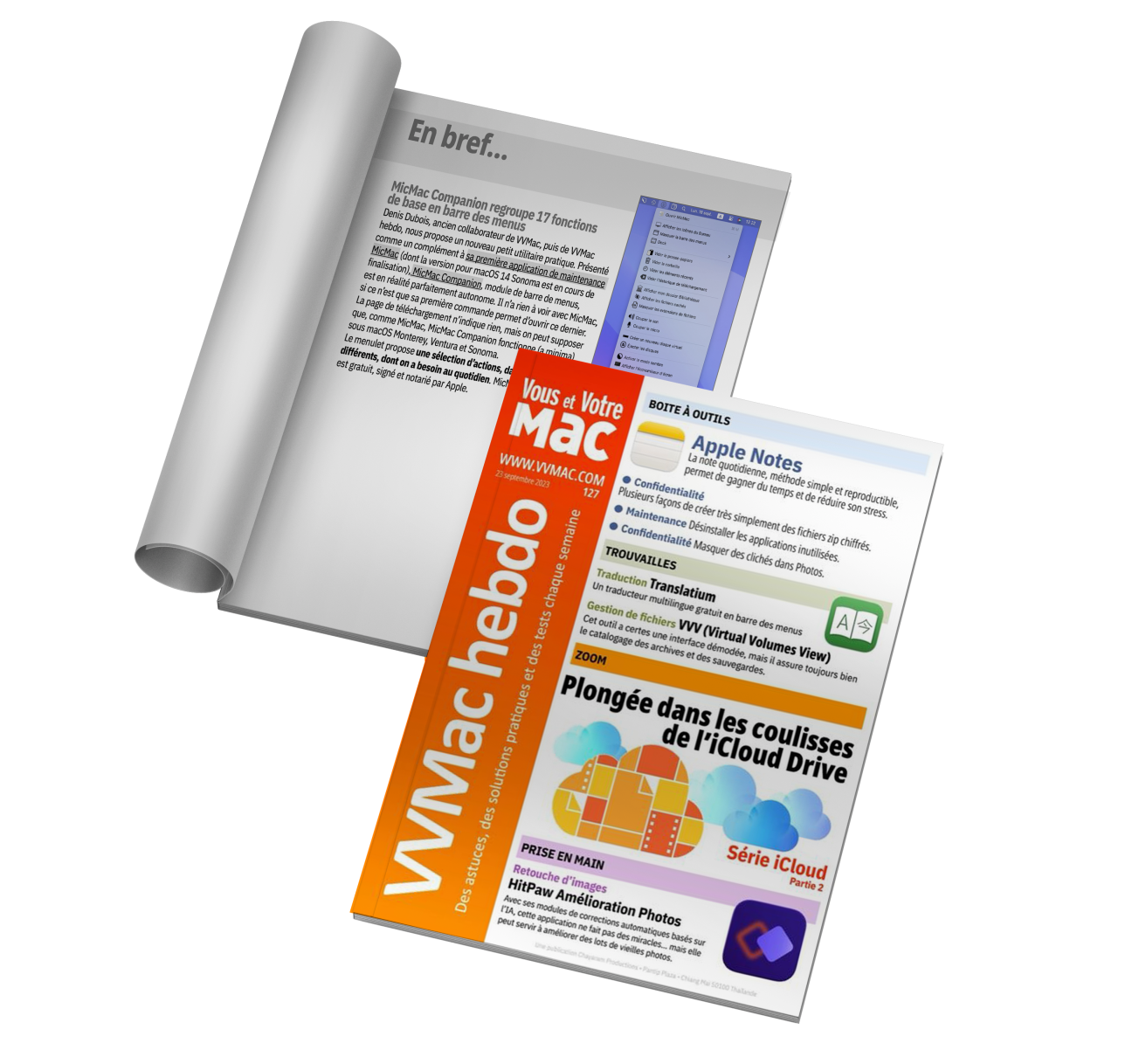 Dans l'édition de septembre 2023 du magazine VVMac, une publication hebdomadaire axée sur le Mac et l'écosystème macOS, notre application fait l'objet d'un article.